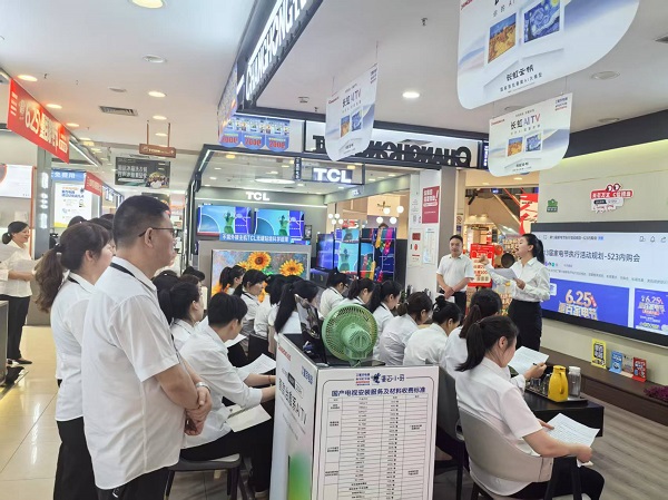 重慶農商行“金融特派員”為商戶店員講解“國補煥新 提振消費”活動內容。重慶農商行供圖
