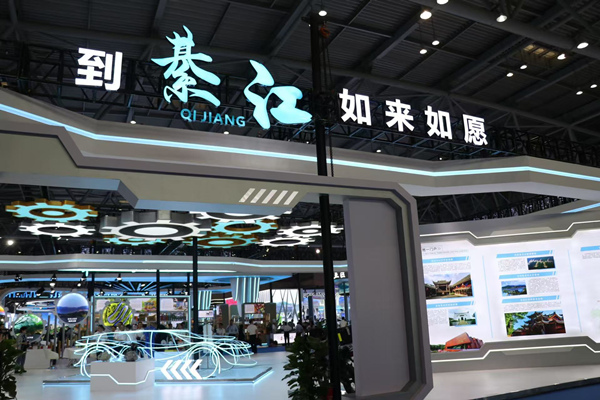 在國博中心現代化產業展區N7-A05,綦江展館面積414平方米,設計以鋁和黃銅金屬色為主色調,融入酷炫新能源汽車線條和齒輪工業元素,通過現代化展陳手段,全方位展現綦江產業發展成果和城市形象。