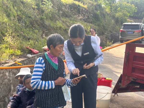 巫山支行“張富清金融服務隊”登上海拔1000余米的茶山,為茶農上門辦卡。建行重慶市分行供圖
