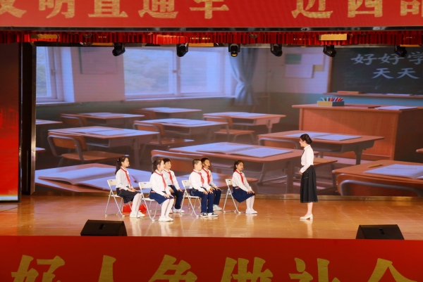 “一個好人帶動一群人,一群好人溫暖一座城。今天讓我們以身邊好人為榜樣,爭做社會主義接班人,同學們,上課!”隨后舉行的“大思政課”,以“尋找好人—學習好人—爭做好人”為主線,“紅領巾—團徽—黨徽”三段成長標志貫穿,小學、中學、大學、社會四大課堂為載體,展現學生在不同階段對“好人”認知的深化與思想的升華,形成“多課堂聯動、全過程沉浸、全鏈條育人”的思政課創新模式。