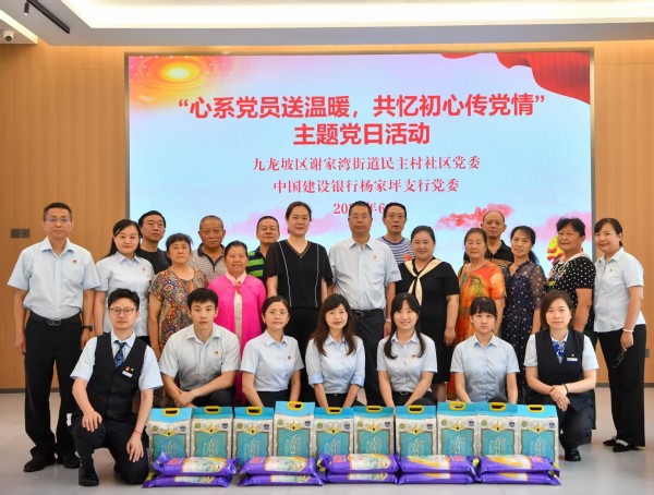 楊家坪支行黨委與九龍坡區謝家灣街道民主村社區黨委聯合開展“心系黨員送溫暖 共憶初心傳黨情”主題黨日活動。建行重慶市分行供圖