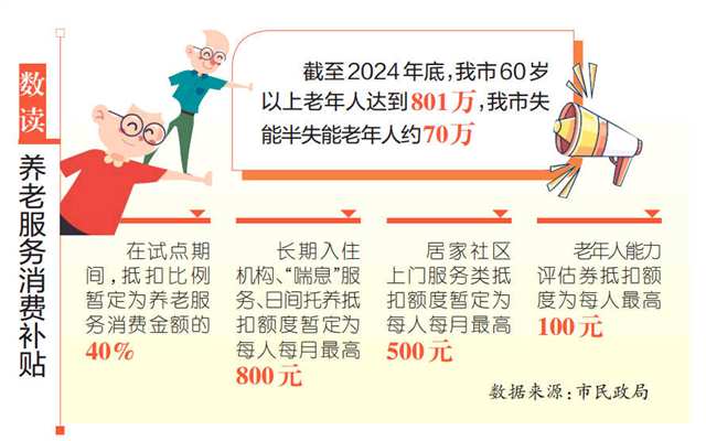 惠及我市70萬失能半失能老年人,每月最高補貼800元