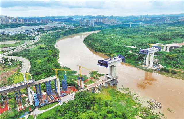 9月8日,重慶寶山嘉陵江大橋施工現場,一派忙碌有序的建設景象。