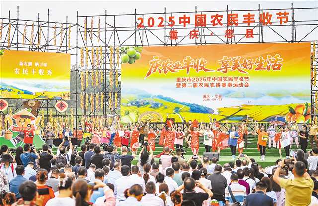 9月23日,忠縣馬灌鎮,重慶市2025年中國農民豐收節暨第二屆農民農耕賽事運動會在此舉辦,吸引眾多村民和游客參與。當日是第八個中國農民豐收節,我市各區縣紛紛舉辦豐富多彩的活動,展現巴渝和美鄉村的建設成果,分享農民豐收的喜悅。(記者 鄭宇 趙偉平 攝影報道/視覺重慶)