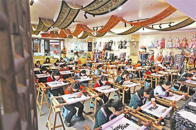 10月26日,彭水縣蚩尤九黎城苗繡館,繡娘們正在參賽。